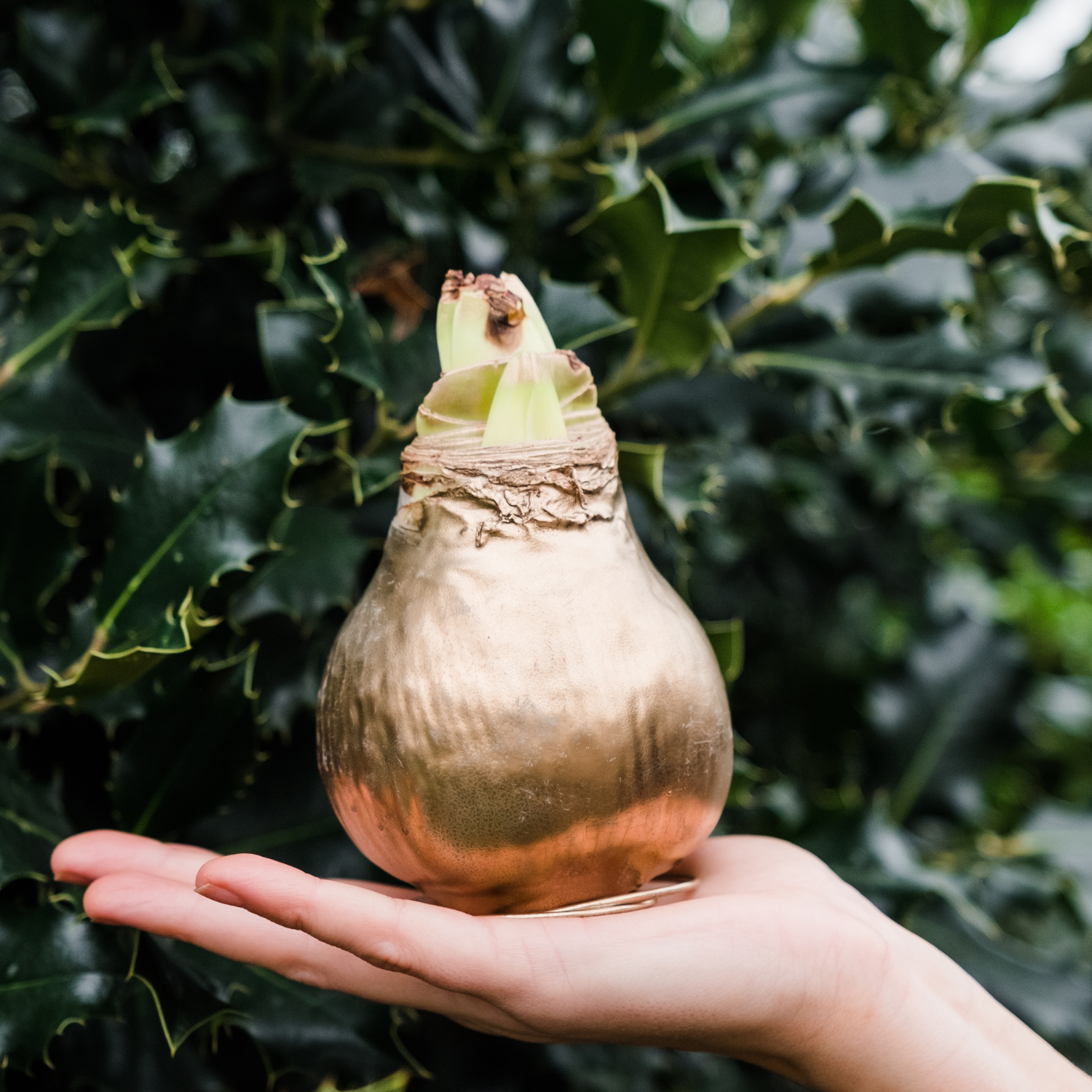 These stunning plants are from one of our favourite local BC farms, Van Noort Bulb. These plants come in bulb form, encased in gold wax. The bulb has everything it needs to flower so all you have to do is sit back and watch it bloom! You can expect the first bloom within 4 weeks and then a second bloom 2-3 weeks after that. You can select from either gold wax with a red or a white bloom.