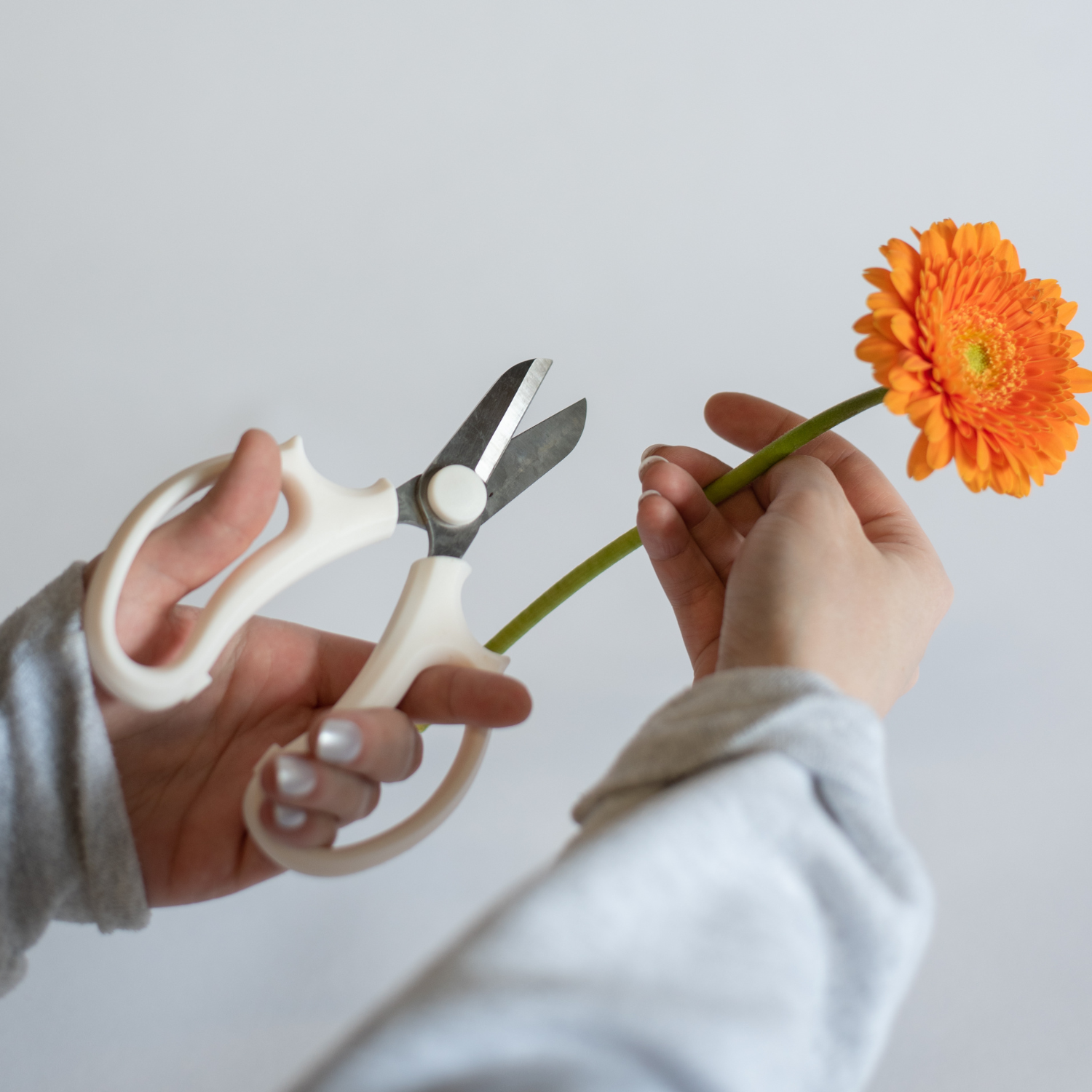 Effortlessly snip through stems and branches with our White Floral Shears. The stainless steel blades are precise and durable, while the white handles add a touch of style. Perfect for any gardening or floral needs, these shears make for a functional and fashionable tool.